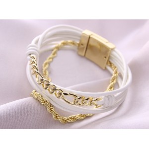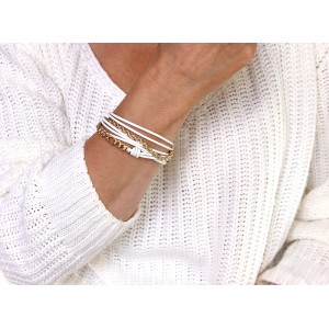 Biała bransoletka ze skórzanych rzemyków i pozłacanej stali szlachetnej