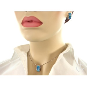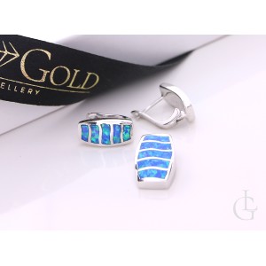 Komplet biżuterii ze srebra rodowanego pr.0,925 z opalem błękitnym. Biżuteria składa się z delikatnych kolczyków na angielskie zapięcia oraz wisiorka. Kolekcja sklepu LipGold.pl