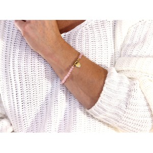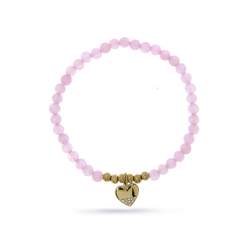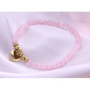 Delikatna i dziewczęca bransoletka na żyłce jubilerskim z naturalnymi różowymi agatami i pozłacanym serduszkiem ze stali szlachetnej i cyrkoniami. Kolekcja sklepu Pruchnik biżuteria Lipgold.pl