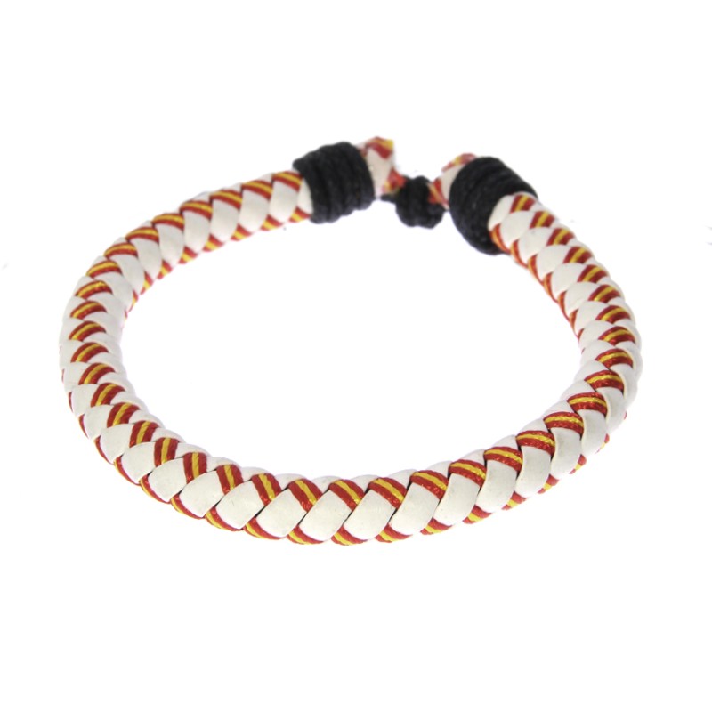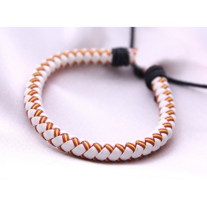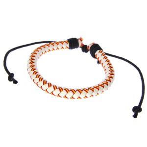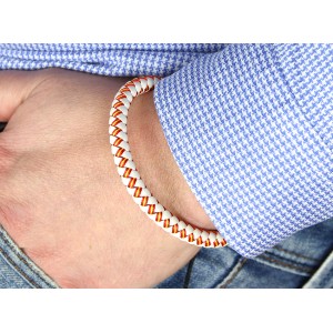 Bransoletka męska na plecionym białym pasku ze skóry ekologicznej z pomarańczowym akcentem. Kolekcja sklepu Pruchnik biżuteria LipGold.pl