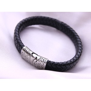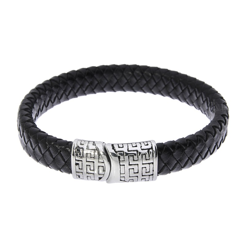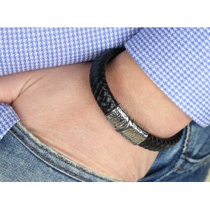 Bransoletka męska na czarnym skórzanym pasku z elementem ze srebra pr.0,925