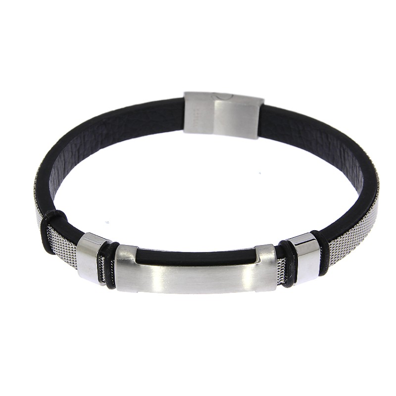 Elegancka bransoleta męska ze stali szlachetnej i skóry naturalnej. Kolekcja sklepu Pruchnik biżuteria LipGold.pl