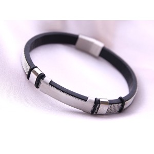 Bransoletka męska ze skóry naturalnej i stali szlachetnej
