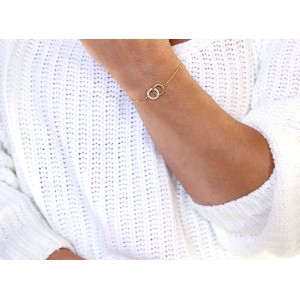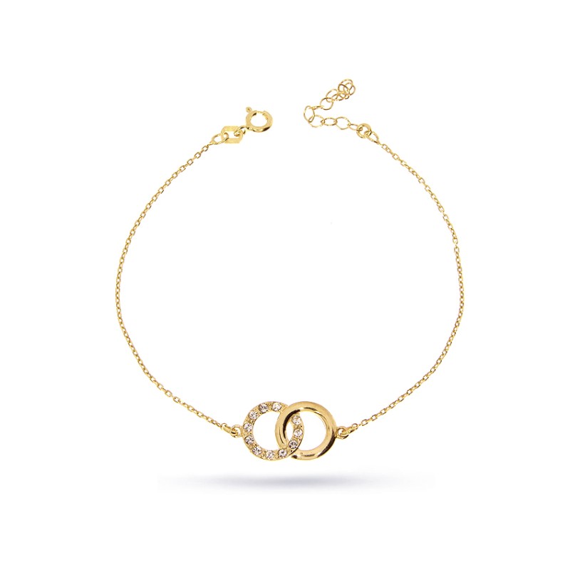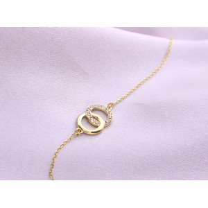 Bransoletka łańcuszkowa- celebrytka z ozdobą w postaci połączonych kółeczek wysadzanego cyrkoniami. Biżuteria wykonana jest z najwyższej jakości srebra pr.0,925 i dodatkowo złocona. Do kompletu można dokupić naszyjnik- celebrytkę. Kolekcja LipGold.pl