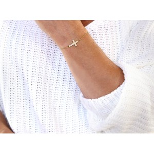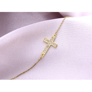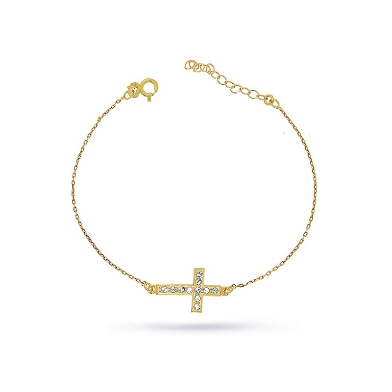 Bransoletka łańcuszkowa- celebrytka z ozdobą w postaci krzyżyka wysadzanego cyrkoniami. Biżuteria wykonana jest z najwyższej jakości srebra pr.0,925 i dodatkowo złocona. Do kompletu można dokupić naszyjnik- celebrytkę. Kolekcja LipGold.pl