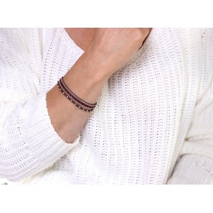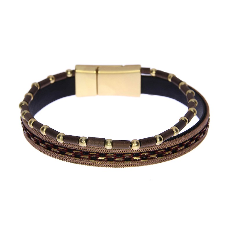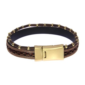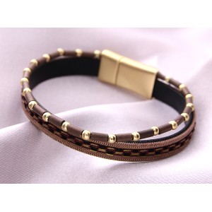 Bransoletka damska ze skóry i pozłacanej stali szlachetnej