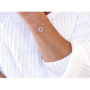 Bransoletka łańcuszkowa celebrytka z kółeczkiem, wysadzana cyrkoniami. Wykonana w całośći ze srebra rodowanego pr.0,925. Do kompletu można dokupić również naszyjnik celebrytkę z kółeczkiem (kod produktu LgSN 271). Pozłacana kolekcja LipGold.pl