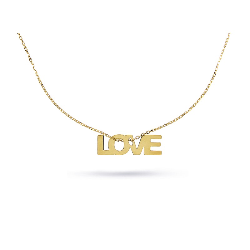 Naszyjnik łańcuszkowy celebrytka ze srebra pozłacanego pr.0,925 z napisem LOVE. kolekcja sklepu Pruchnik biżuteria LipGold.pl