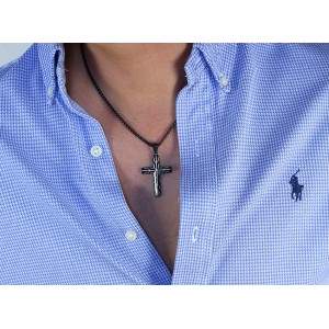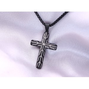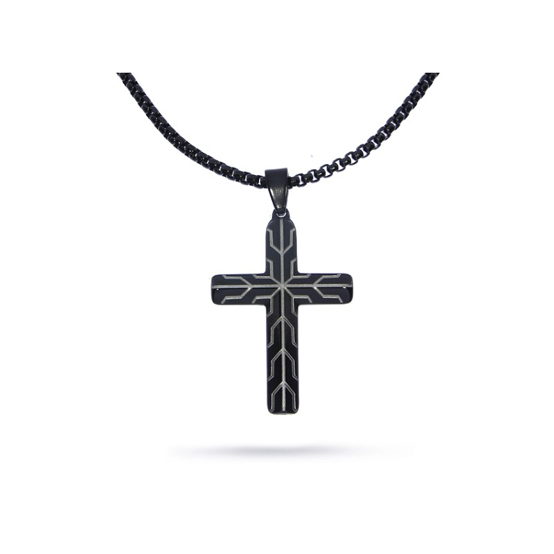 Czarny krzyż na łańcuszku ze stali szlachetnej 316L