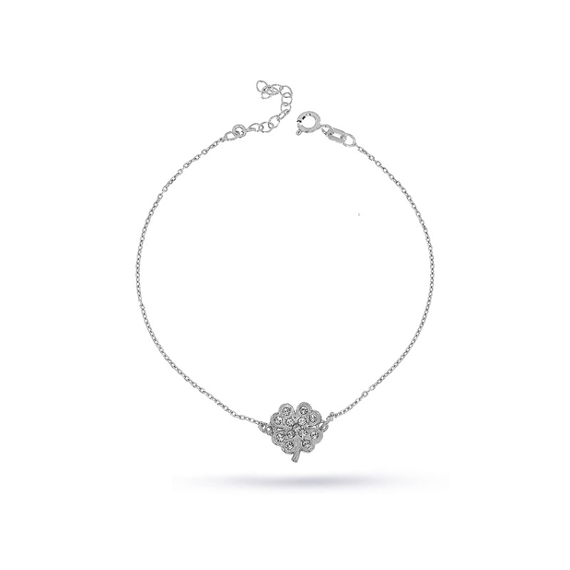 Bransoletka łańcuszkowa- celebrytka z ozdobą w postaci koniczynki wysadzanej cyrkoniami. Biżuteria wykonana jest z najwyższej jakości srebra rodowanego pr.0,925. Do kompletu można dokupić naszyjnik- celebrytkę. Kolekcja LipGold.pl