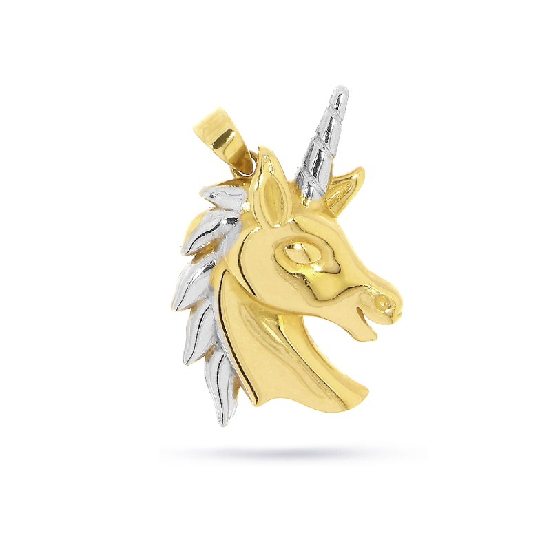 Wisiorek z klasycznego i białego złota pr.0,585 w postaci głowy jednorożca. Jednorożec to symbol czystości i piękna. Jest utożsamiany z czymś co nieosiągalne, idealne, doskonałe. Starożytne wierzenia mówią, że uchwycić jednorożca mogła tylko osoba o czystej i nieskazitelnej duszy, o niewinnym sercu. Kolekcja sklepu Pruchnik biżuteria LipGold.pl