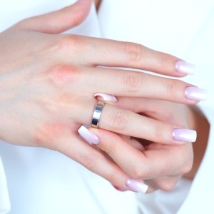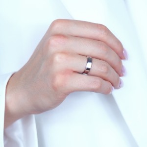 Klasyczna obrączka ślubna prosta polerowana z fazą (ścinana) o szerokości 5 mm wykonana ze srebra rodowanego pr.0,925. Kolekcja sklepu LipGold.pl