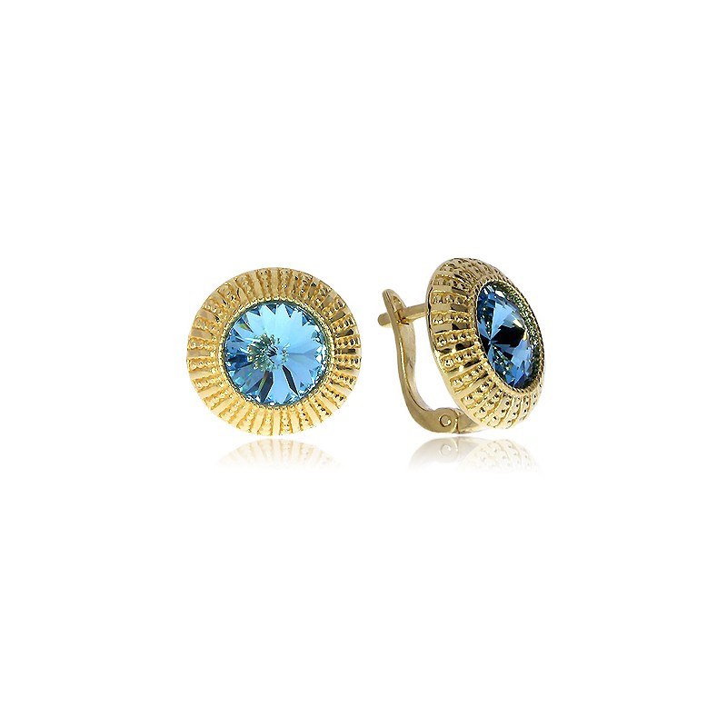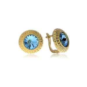 Kolczyki srebrne pozłacana z niebieskim kamieniem zapięcie angielskie