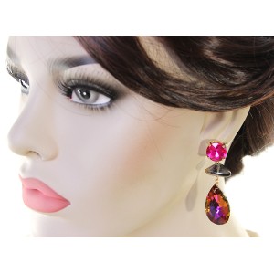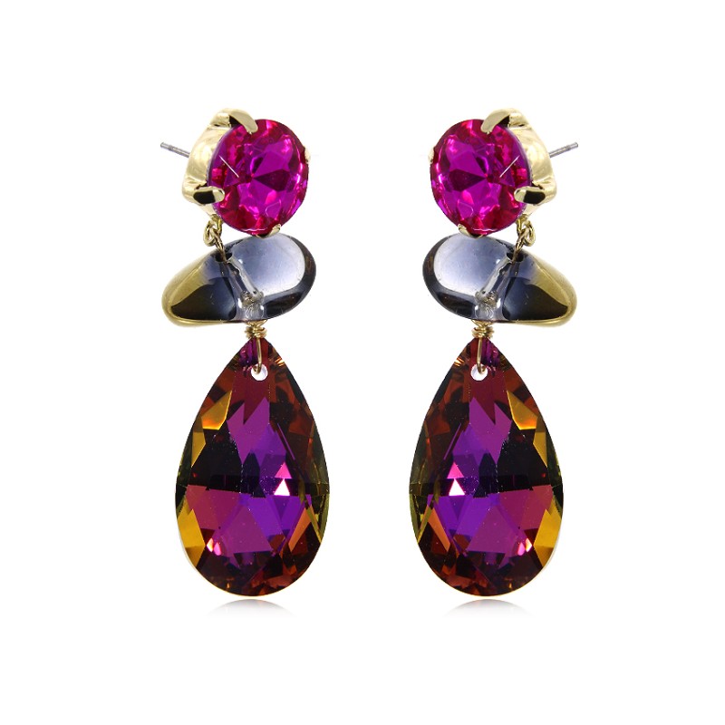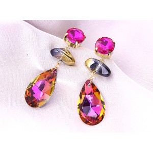 Kolczyki wiszące z rubinowymi kamieniami szkło fasetowane stal szlachetna