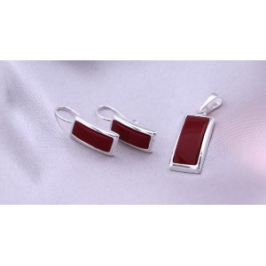 Komplet biżuterii ze srebra pr.0,925 składający się z kolczyków z klasycznymi zapięciami i wisiorka z koralowcem Do kompletu można dokupić bransoletę (kod produktu LgSB 1204). Kolekcja sklepu LipGold.pl