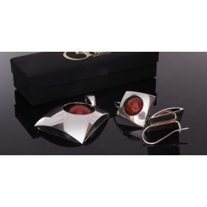 Przepiękny okazały komplet biżuterii damskiej ze srebra pr.0,925 składający się z zawieszki i wiszących kolczyków z koralem. Do zestawu można dokupic również bransoletę LgSB 890. Kolekcja sklepu LipGold.pl
