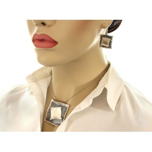Ciekawy o współczesnym designie komplet biżuterii ze srebra rodowanego i oksydowanego pr.0,925 składający się z kolczyków wiszących i okazałej przywieszki. Kolekcja sklepu Lipgold.pl