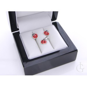 Komplet biżuterii ze srebra rodowanego pr.0,925 kolczyki zawieszka w postaci biedronek
