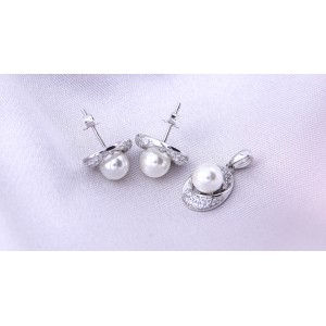 Komplet biżuterii ze srebra rodowanego pr.0,925 z cyrkoniami i perłami
