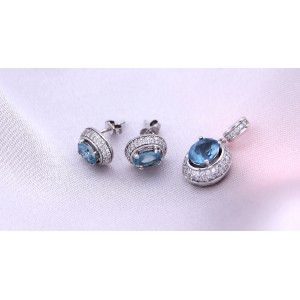 Komplet biżuterii ze srebra rodowanego pr.0,925 z cyrkoniami klasycznymi i w kolorze topazu błękitnego