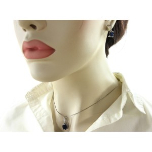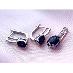 Komplet biżuterii ze srebra rodowanego pr.0,925 z szafirowymi i klasycznymi cyrkoniami