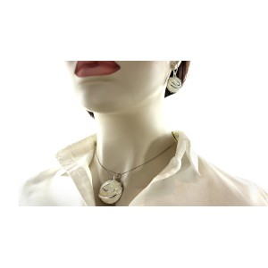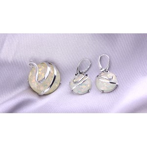 Prześliczny komplet biżuterii ze srebra rodowanego pr.0,925 składający się z wiszących kolczyków z klasycznymi zapieciami i okazałego wisiora z pięknie połyskującym opalem syntetycznym. Do kompletu można dokupić również bransoletę (kopd produktu LgSB 730). Kolekcja sklepu LipGold.pl