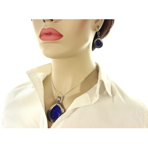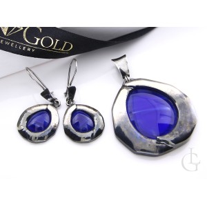 Przepiękny komplet biżuterii ze srebra pr.0,925 składający się z okazałego wisiora i wiszących kolczyków z uleksitem w cudownym chabrowym kolorze. Kolekcja sklepu LipGold.pl