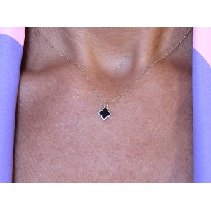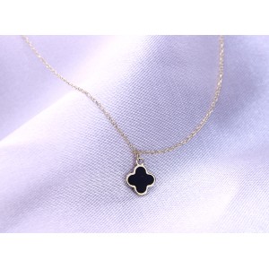 Delikatny naszyjnik- celebrytka z klasycznego złota pr.0,585 z koniczynką z onyksem. kolekcja sklepu Pruchnik biżuteria LipGold.pl