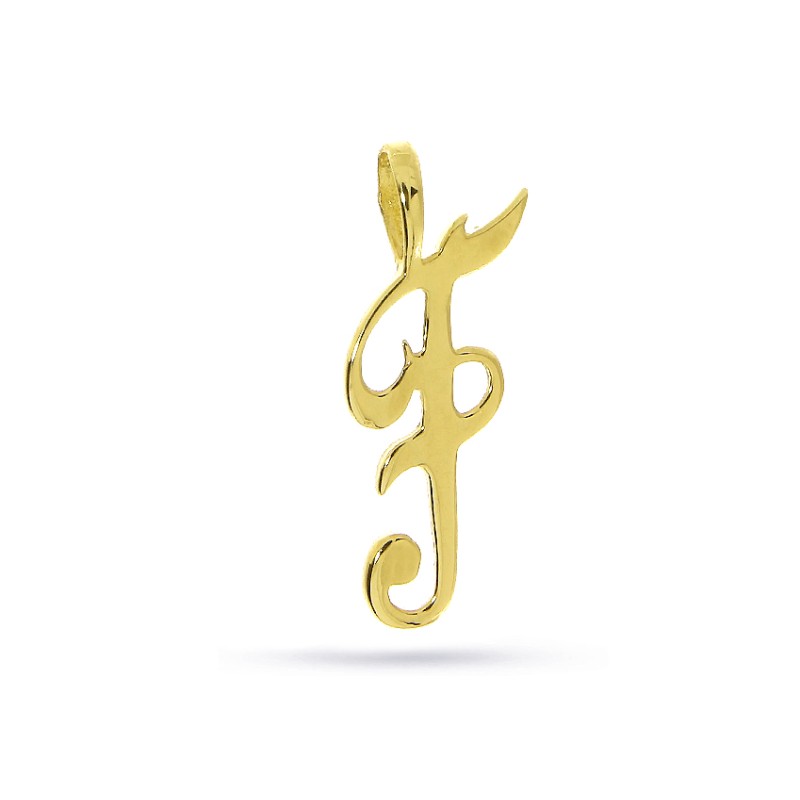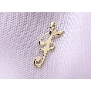 Złota zawieszka w postaci złotej litery F finezyjnie zawijanej. Wisiorek może stanowić wyjątkowy prezent dla wszystkoch osób, których imię, nazwisko lub pseudonim zaczyna się na literę F. W połączeniu z delikatnym łańcuszkiem może być urokliwym podarunkiem dla wszystkich i na wszelkie okazje.