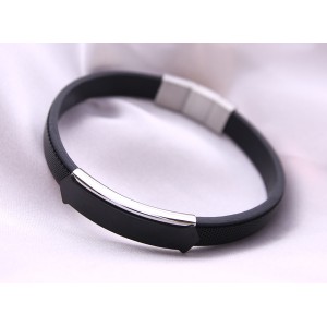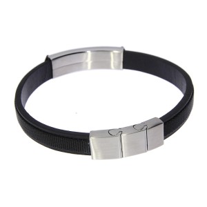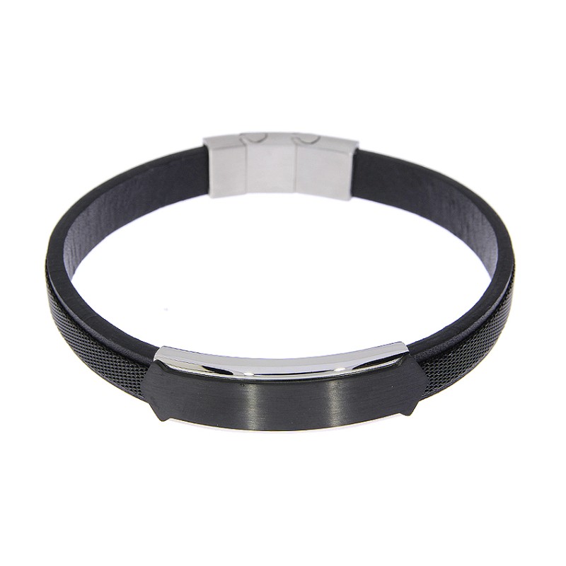 Męska bransoletka męska czarna ze skóry i stali szlachetnej