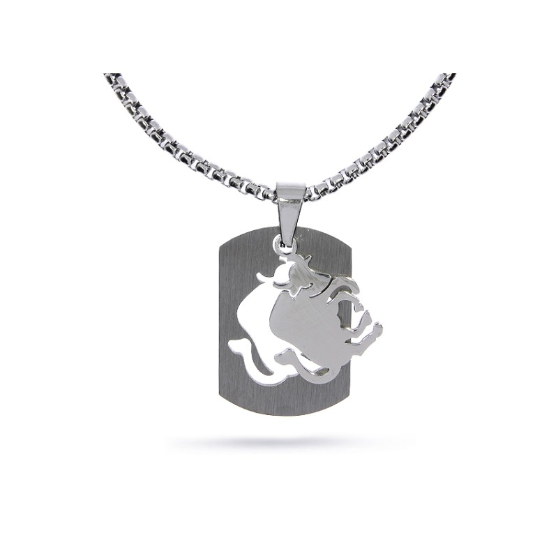 Efektowny naszyjnik męski ze stali szlachetnej z blaszką- nieśmiertelnikiem i znakiem zodiaku BYK. Idealny na prezent z każdej okazji dla każdego mężczyzny. Kolekcja sklepu Pruchnik biżuteria LipGold.pl