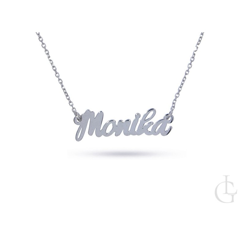 Monika naszyjnik łańcuszkowy celebrytka z imieniem srebro rodowane pr.0,925