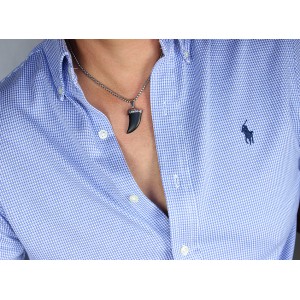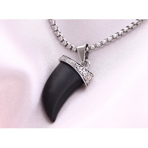 Naszyjnik męski z najwyższej jakości stali szlachetnej w postaci kła z czarnym agatem. Kolekcja sklepu Pruchnik biżuteria LipGold.pl