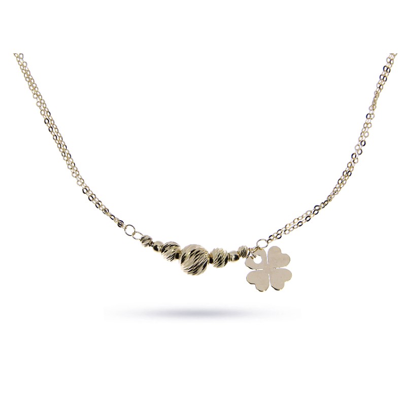 Podwójny naszyjnik złoty z koniczynką i diamentowanymi kuleczkami
