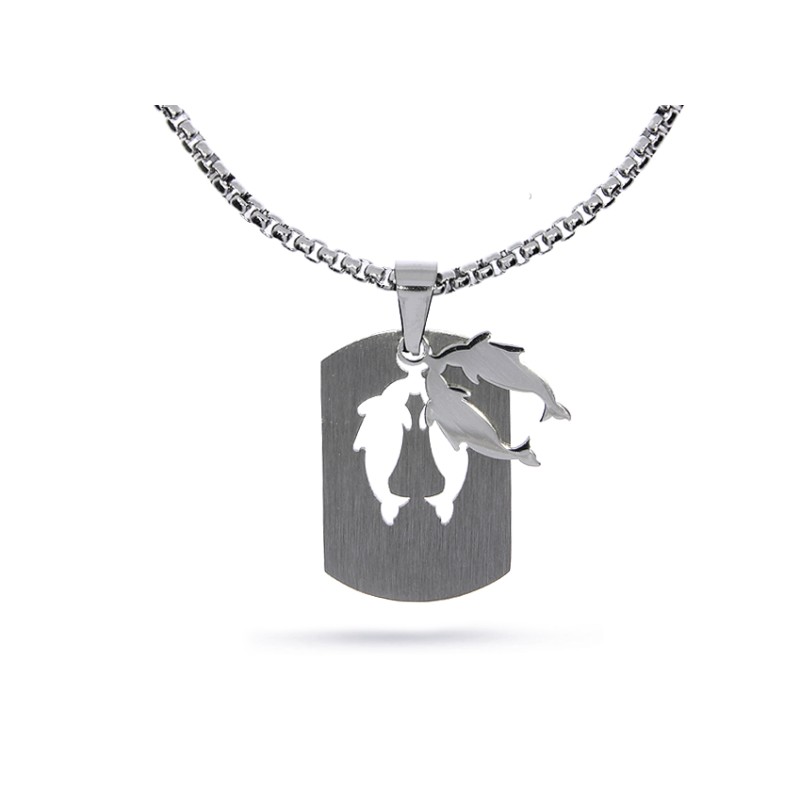 Efektowny naszyjnik męski ze stali szlachetnej z blaszką- nieśmiertelnikiem i znakiem zodiaku RYBY. Idealny na prezent z każdej okazji dla każdego mężczyzny. Kolekcja sklepu Pruchnik biżuteria LipGold.pl