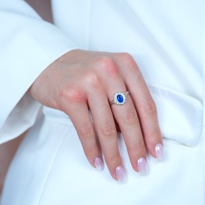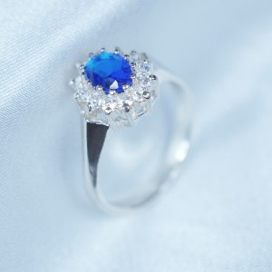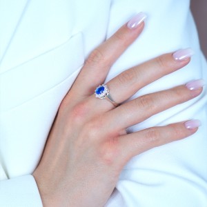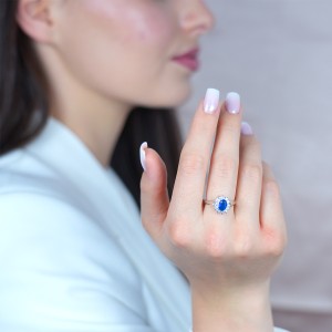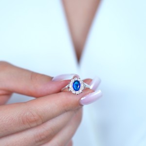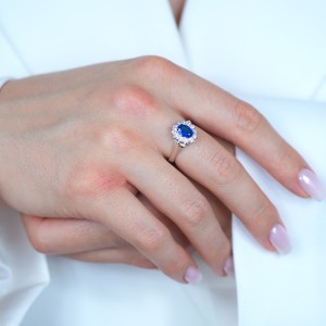 Elegancki pierścionek ze srebra pr.0,925 markiza z szafirowyą i wianuszkiem klasycznych, pięknie połyskujących cyrkonii. Kolekcja sklepu LipGold.pl