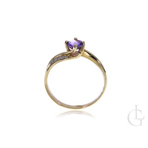 Pierścionek złoty na zaręczyny z ametystem i brylantami