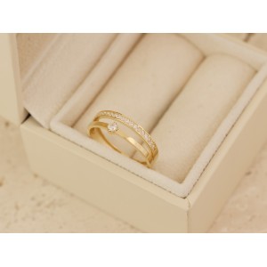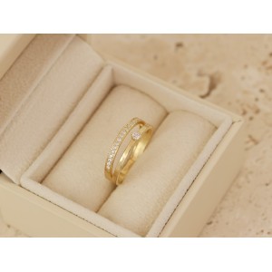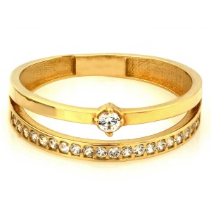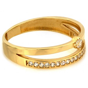 Nowoczesny pierścionek- obrączka z klasycznego złota pr.0,585 wysadzana cyrkoniami. Kolekcja sklepu Pruchnik biżuteria LipGold.pl