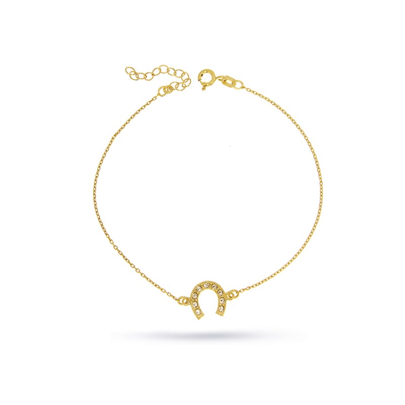 Bransoletka łańcuszkowa- celebrytka ze srebra pozłacanego pr.0,925 podkowa przynosząca szczęście wysadzana cyrkoniami. kolekcja sklepu Pruchnik biżuteria Lipgold.pl