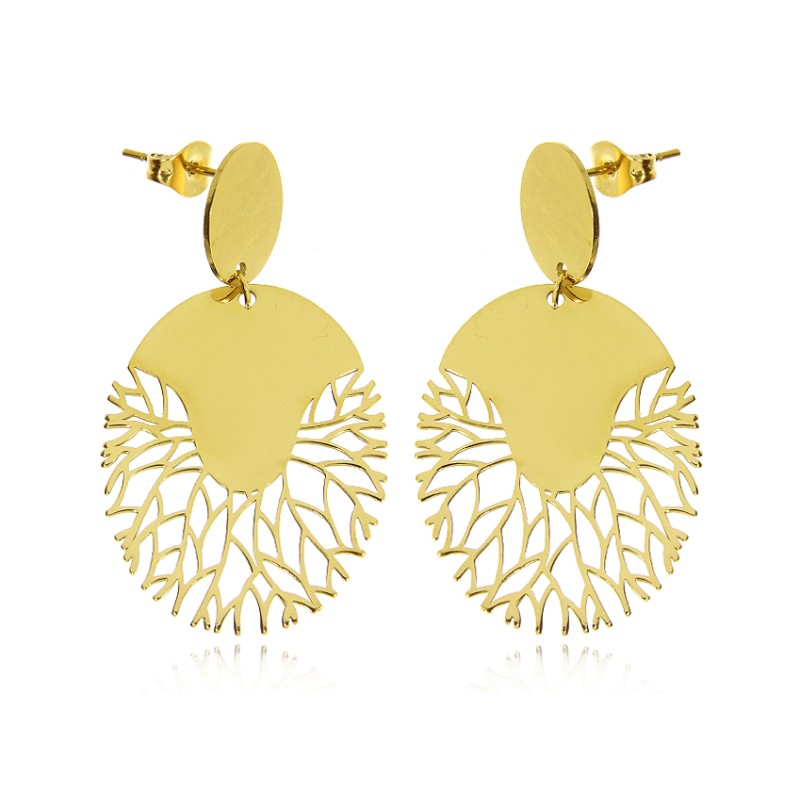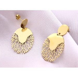 Pozłacane owalne kolczyki sztyft z ażurowym wykończeniem stal szlachetna
