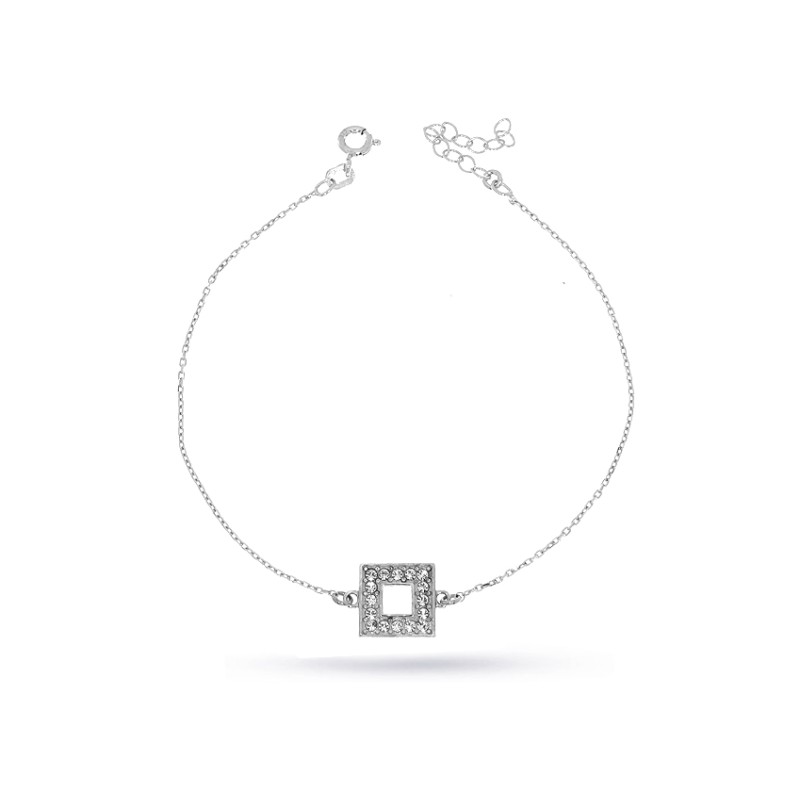 Bransoletka łańcuszkowa- celebrytka z ozdobą w postaci kwadratu wysadzanego cyrkoniami. Biżuteria wykonana jest z najwyższej jakości srebra rodowanego pr.0,925. Do kompletu można dokupić naszyjnik- celebrytkę. Kolekcja LipGold.pl