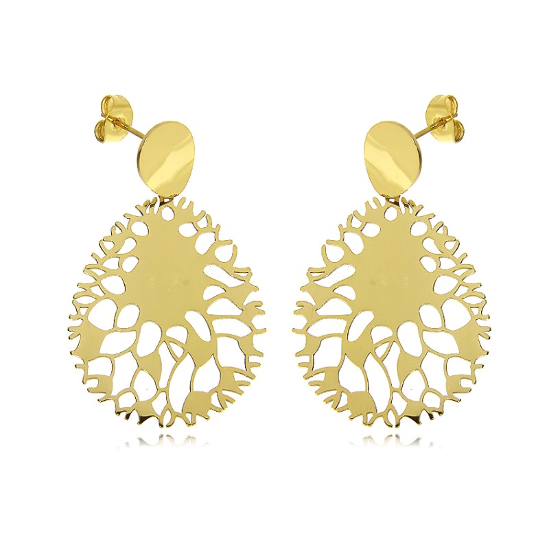 Długie ażurowe kolczyki pozłacane ze stali szlachetnej na wkręty. Kolekcja sklepu Pruchnik biżuteria LipGold.pl