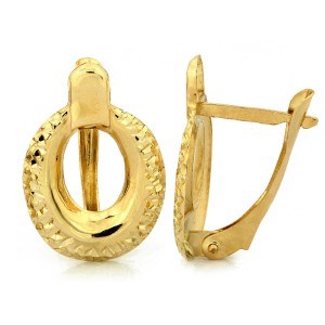 Złote kolczyki duże diamentowane na angielskie zapięcia złoto pr.0,585