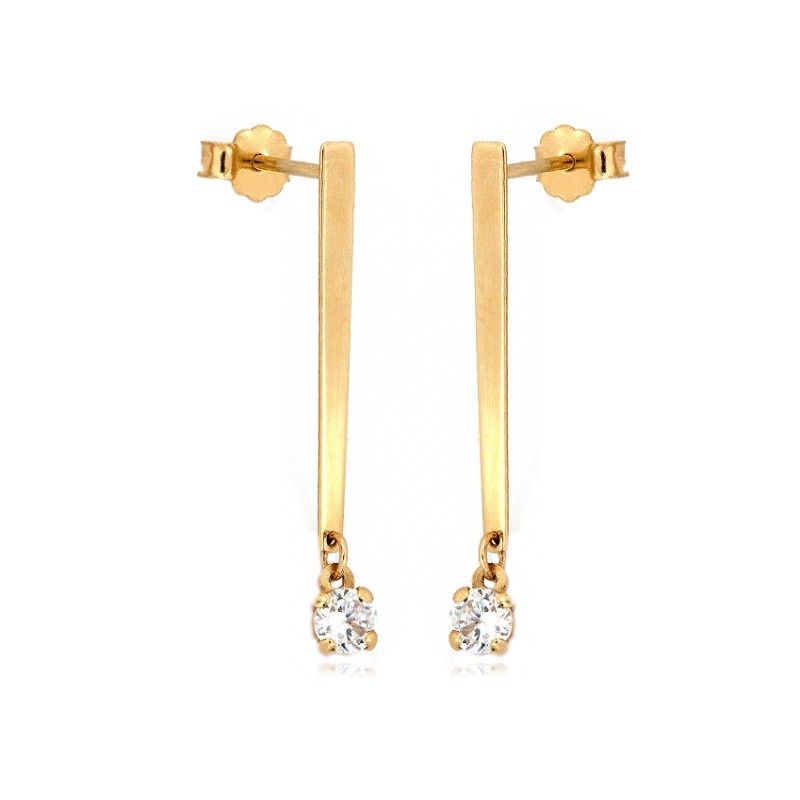 Złote kolczyki wiszące z cyrkoniami na sztyft złoto pr.0,585
