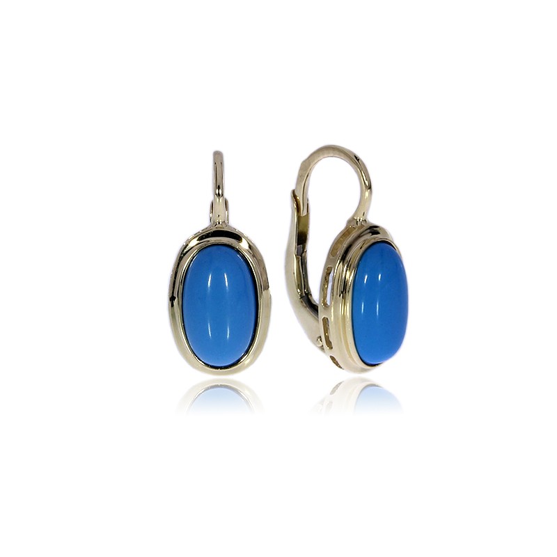 Wspaniały model złotych kolczyków ze 14- karatowego kruszcu z przepięknym owalnym turkusem. Kolczyki są bardzo kobiece i w romantycznym stylu. Przepięknie prezentują się na kobiecym uchu, są uniwersalne i można je zakładać na każdą okazję. Doskonałe na prezent. Posiadają bardzo uniwersalne i bezpieczne zapięcia. Do kompletu można dokupić również wisiorek (lgz 385). Kolekcja sklepu Pruchnik biżuteria LipGold.pl