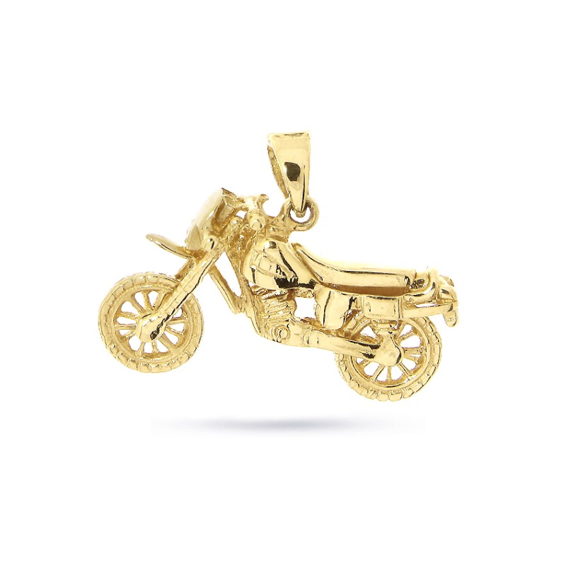 Interesujący pomysł na prezent w postaci złotego wisiorka pr.0,585 w postaci motocykla. Wisiorek wykonany perfekcyjnie z dbałością o wszelkie detale, posiada ruchome koła. Kolekcja sklepu Pruchnik biżuteria LipGold.pl